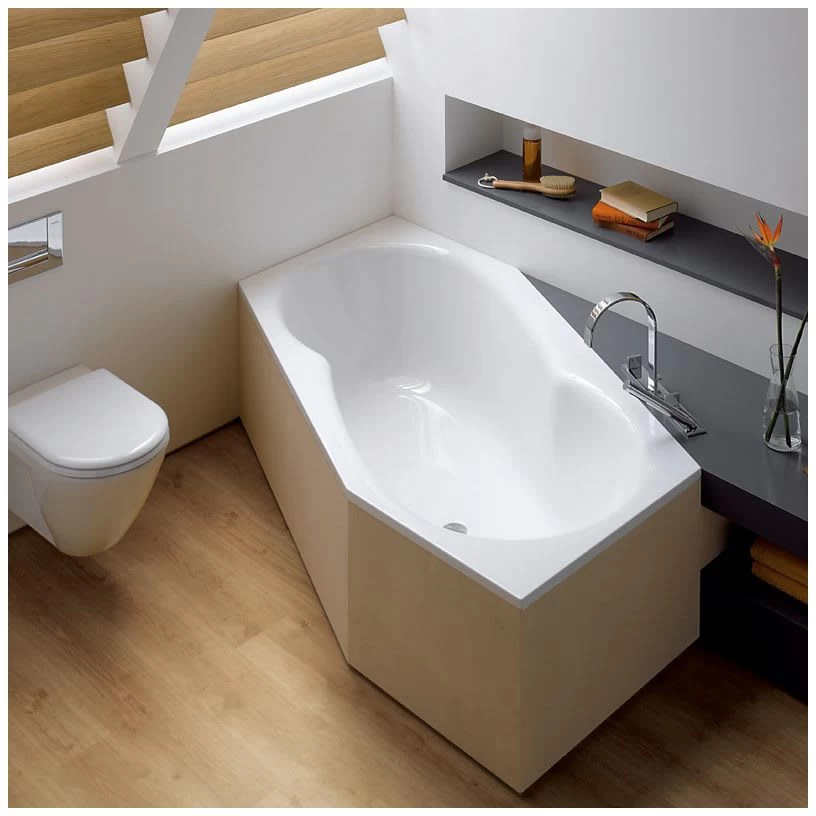 - Exklusivmodell für Ecke rechts, Überlauf vorne: die ungleichschenkelige Außenform bietet verschiedene Einbau- und Anordnungsmöglichkeiten