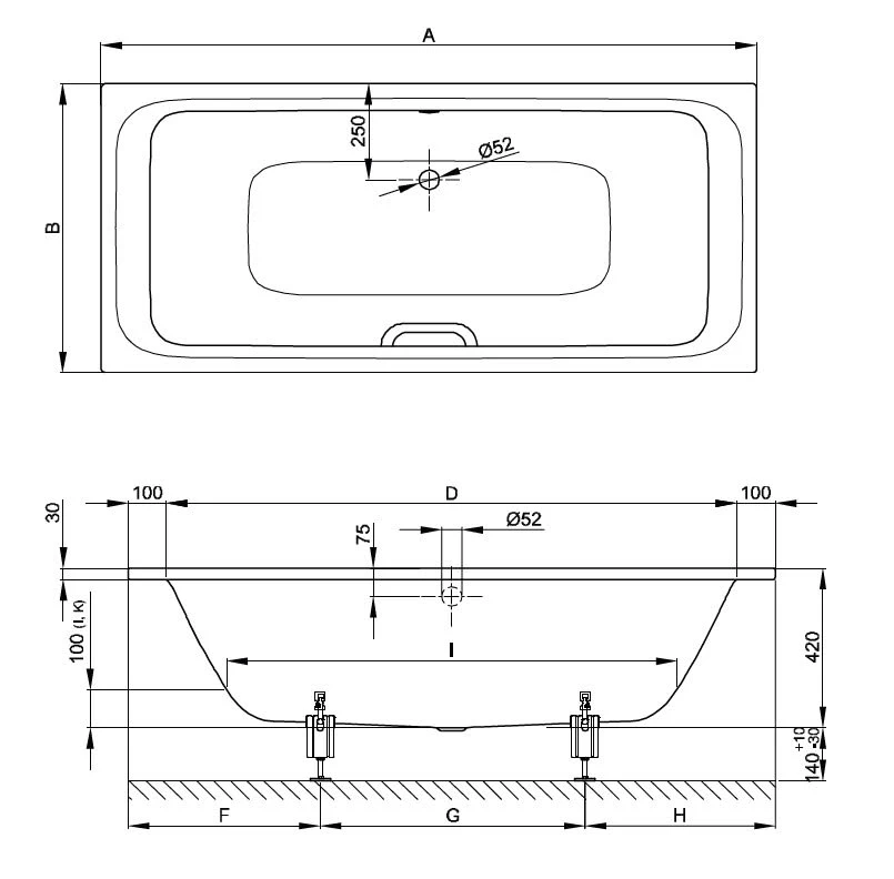 | Ausführung | Überlauf und Ablauf mittig, Überlauf und Ablauf mittig, mit Antirutsch Sense |