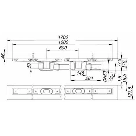 Dallmer CeraLine W Duo Duschrinne 160 cm, DN 50
