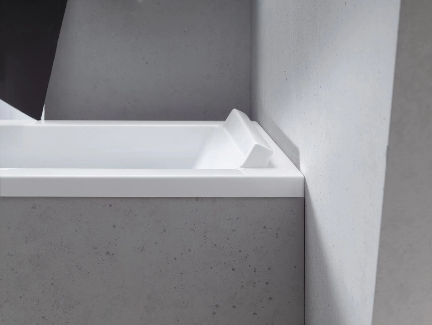 Eine geniale Wellness-Auszeit zu zweit gelingt in der formschönen Duravit Starck Rechteck-Badewanne! Das geradlinige Designobjekt aus der Feder Philippe Starcks mit seiner modernen, kantigen Kontur und zwei bequemen gegenüberliegenden Rückenschrägen. Der großzügige, geometrisch gestaltete Innenraum sowie der mittig angeordnete Ab- und Überlauf erzeugen einen komfortablen Sitzbereich für zwei. Die beidseitig angeformten Nackenstützen bieten eine perfekte Ablage für den Kopf und sorgen für eine entspannte Liegeposition. Ergänzend kann das Wohlfühlerlebnis mit den optional erhältlichen Duravit Starck Nackenkissen gelungen abgerundet werden. Dank des schlag- und stoßunempfindlichen Sanitäracryls mit seiner glatten, porenfreien Oberfläche stellt sich beim Baden zudem ein angenehm warmes Hautgefühl ein. Die Badewanne kann wahlweise als Einbauversion verfliest oder mit einer passenden Wannenverkleidung aus weißem Acryl kombiniert werden, für maximalen Gestaltungsfreiraum.