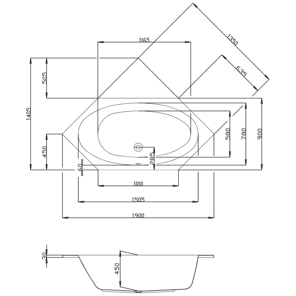 Hoesch Armada Sechseck-Badewanne 190 x 90 cm