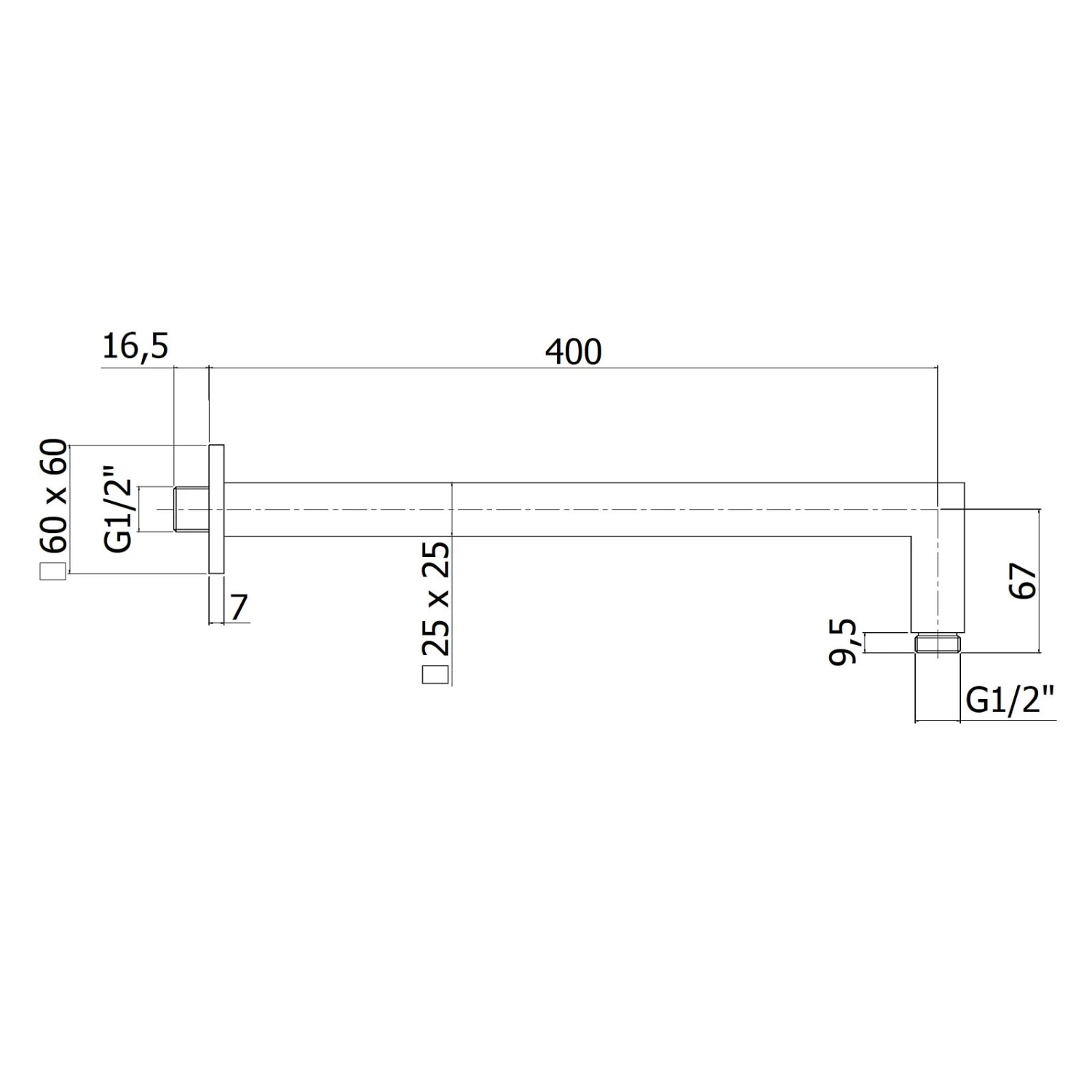 House Brausearm eckig für Wandmontage 40 cm
