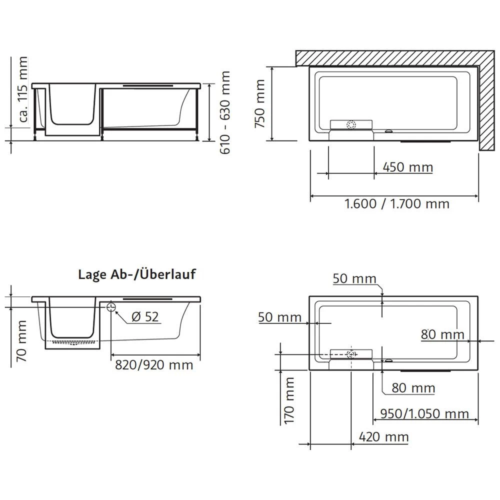 - Sicherheitsüberlauf gegen Auslaufen aus dem Einstiegsbereich