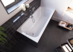 - Bei Variante „weiß/schwarz“ ist die Schürze in schwarz und die Badewanne innen weiß