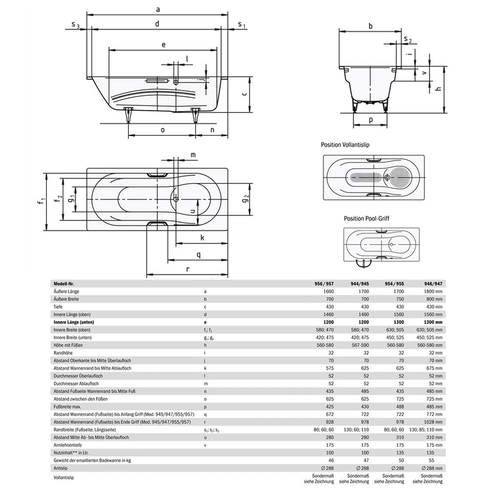 Kaldewei Vaio Set 946 Badewanne 180 x 80 cm mit Antislip