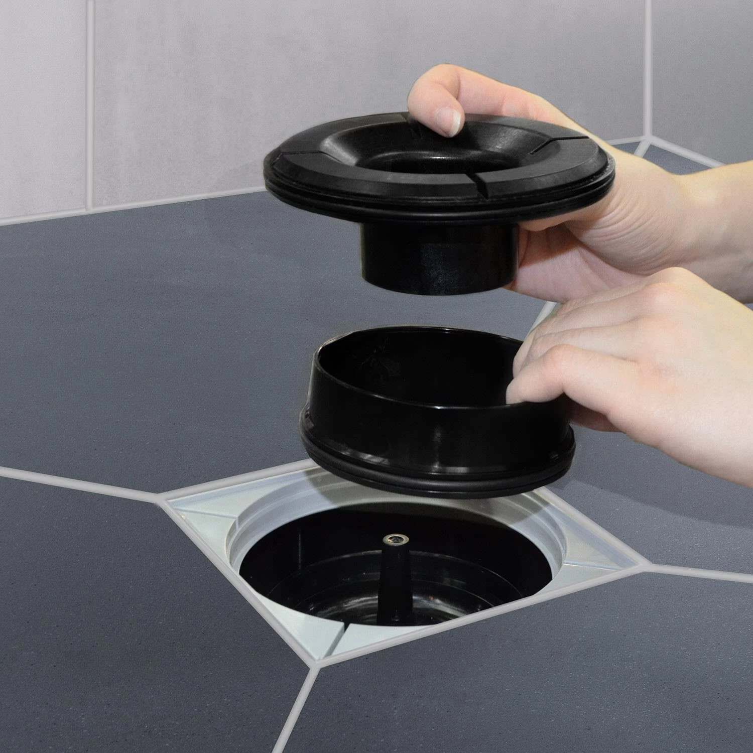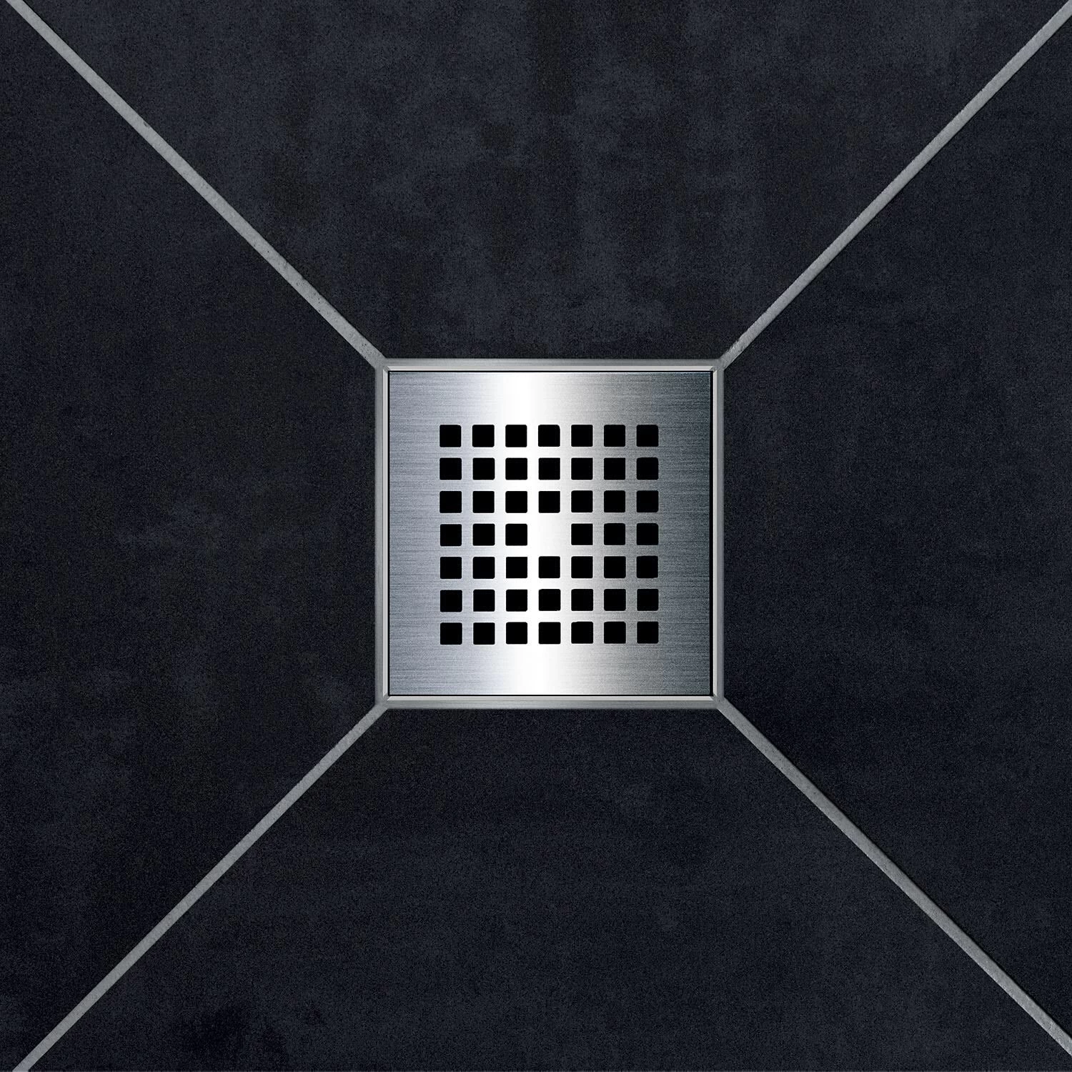 - Serienmäßig mit Ablaufabdeckung aus Edelstahl, Aufstockelement für Aufbauhöhe Fliesenbelag bis 30 mm, Ablaufrahmen (120 mm x 120 mm) aus Kunststoff und Dichtecke 800 x 800 mm