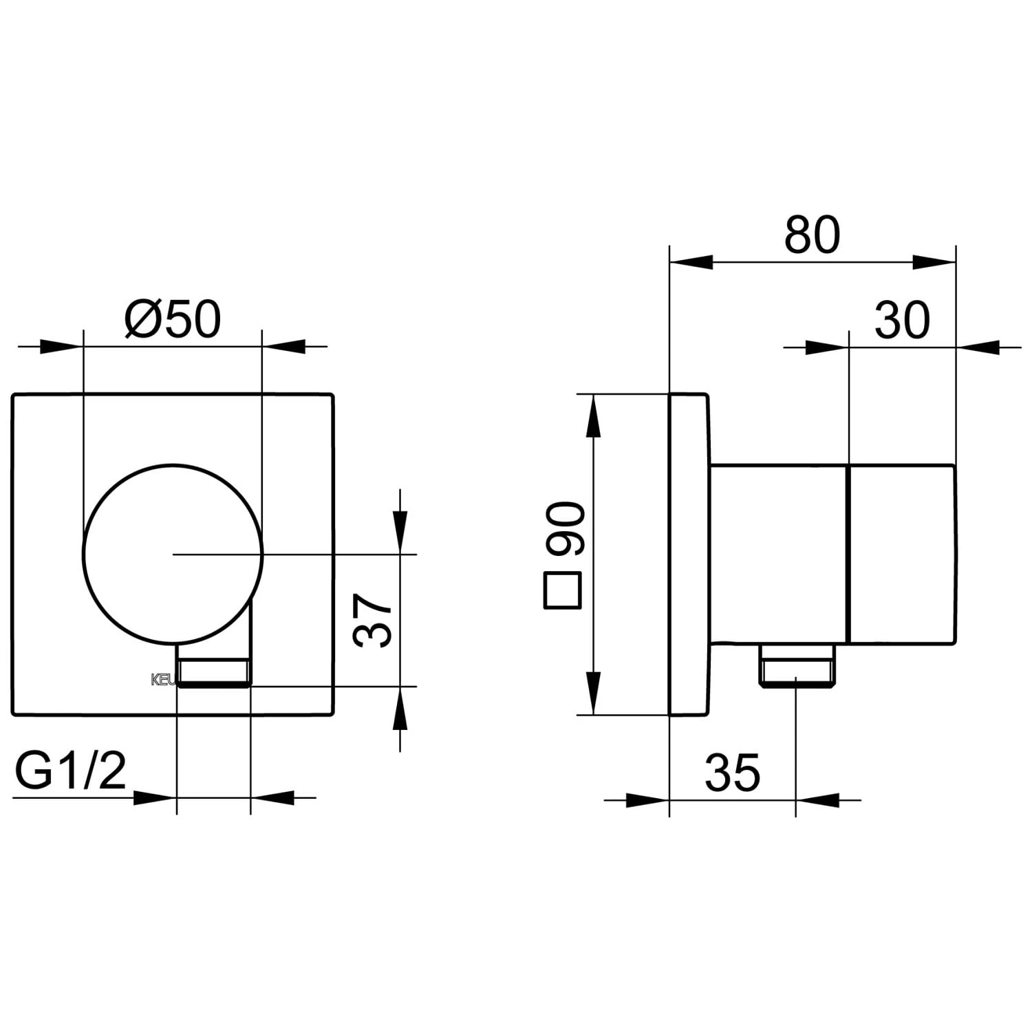Keuco IXMO 2-Wege Umstellventil mit Schlauchanschluss UP DN15 eckig