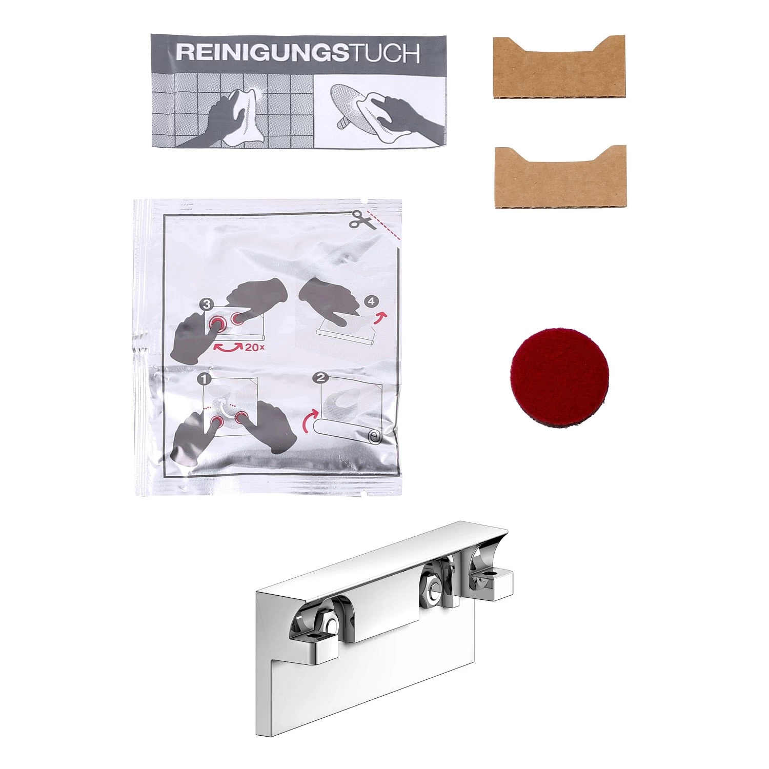 - bestehend aus 1 x Klebepack, 1 x Befestigungsplatte mit Muttern, 1 x Montageelement