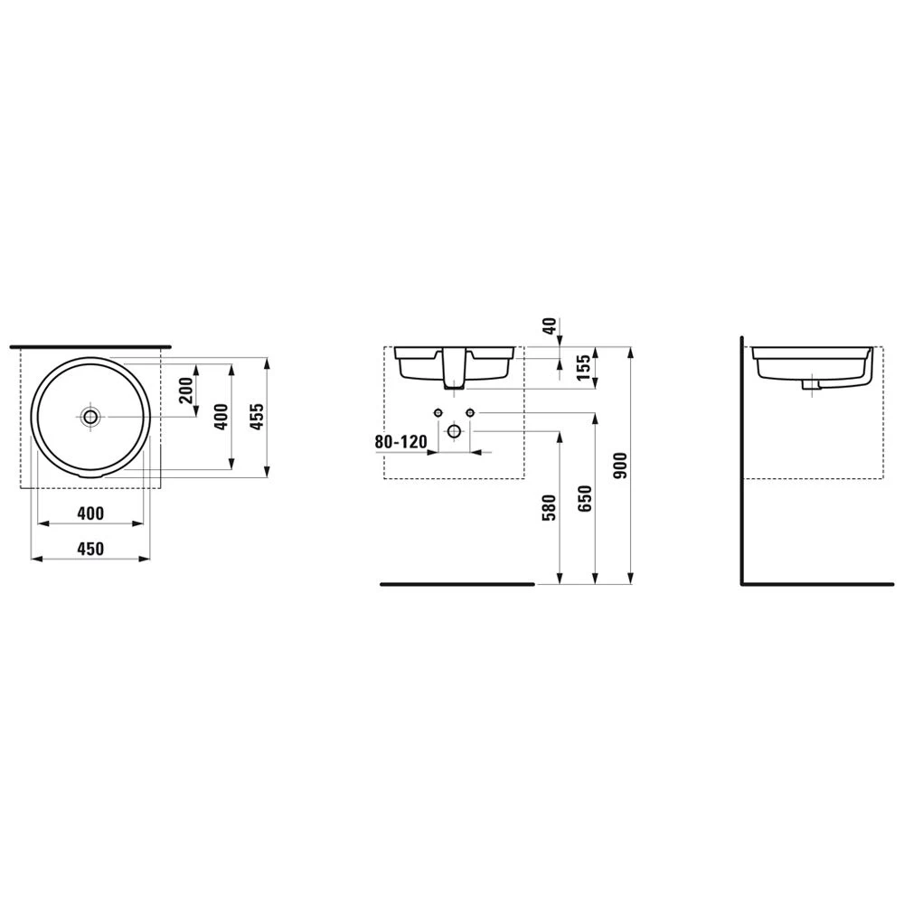 LAUFEN Living City Einbauwaschtisch 45 cm Unterseite glasiert, mit Überlauf, ohne Hahnlochbohrung