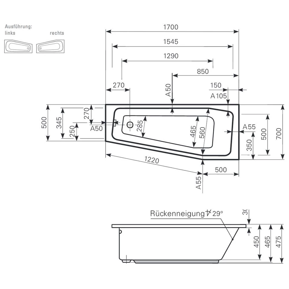 Mauersberger Raumsparbadewanne globosa 170/70 links