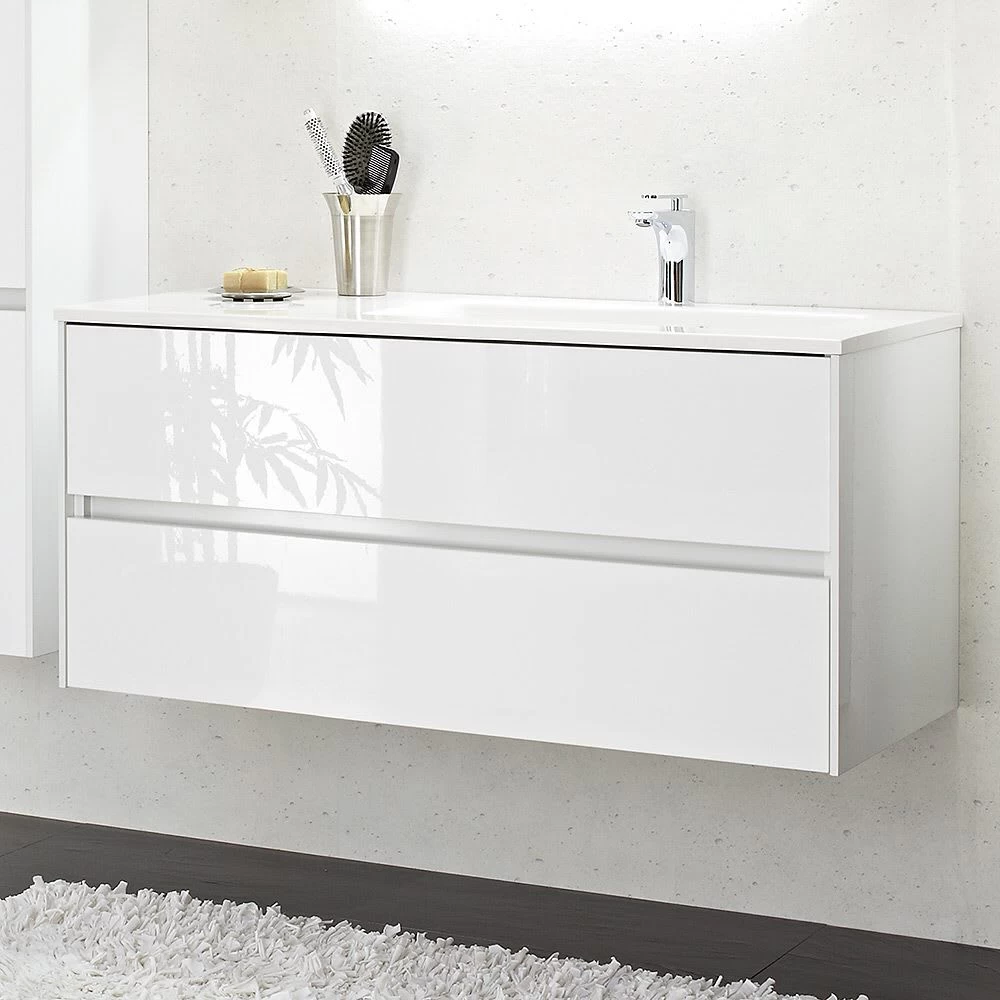 Pelipal Serie 6010 (Solitaire) Waschtischunterschrank 112 x 49,3 x 51,2 cm, mit 2 Auszügen, Becken links