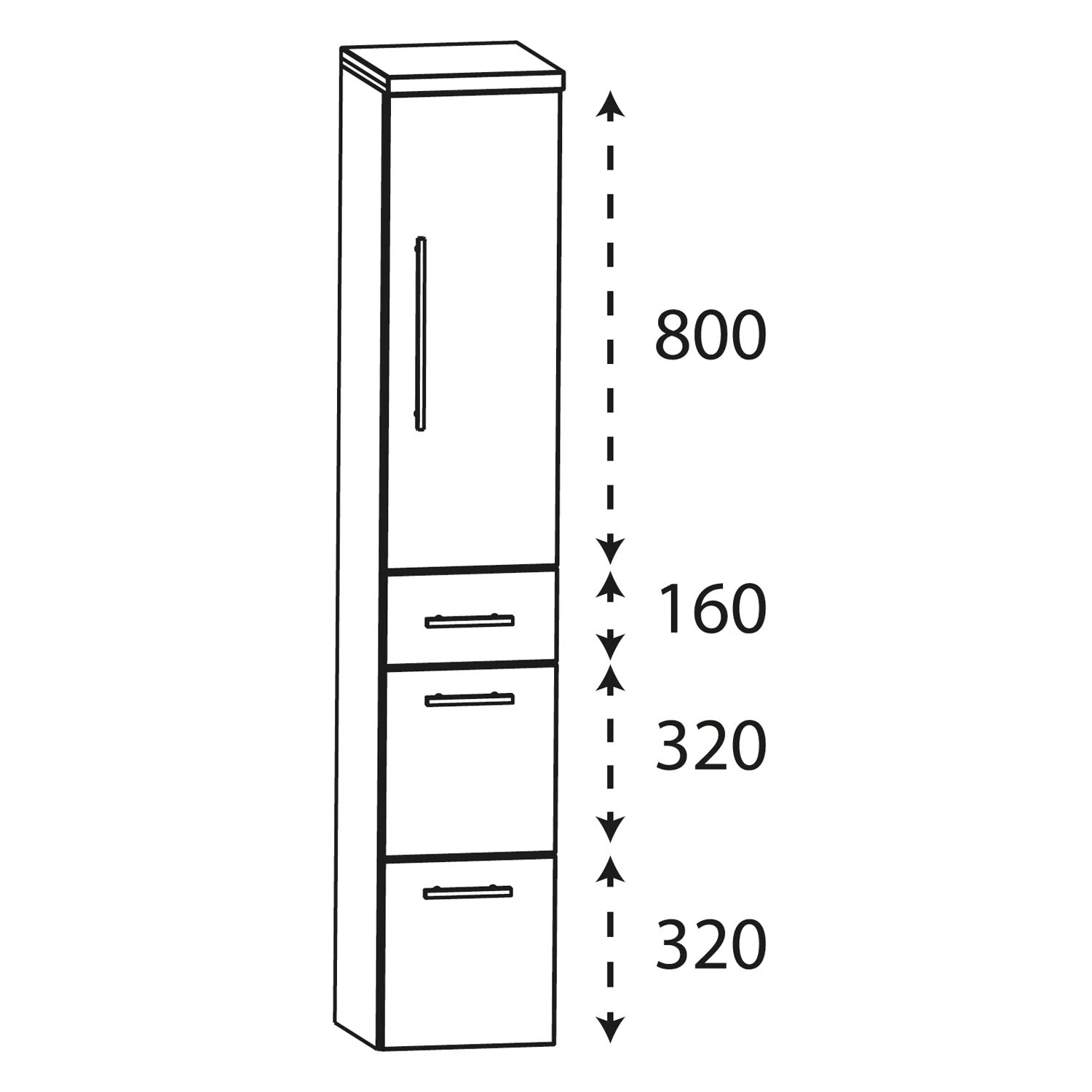 Puris Star Line Hochschrank 30 x 30 x 162,8 cm mit 2 Auszügen, 1 Schubkasten und 1 Tür, Anschlag rechts, Griff 329