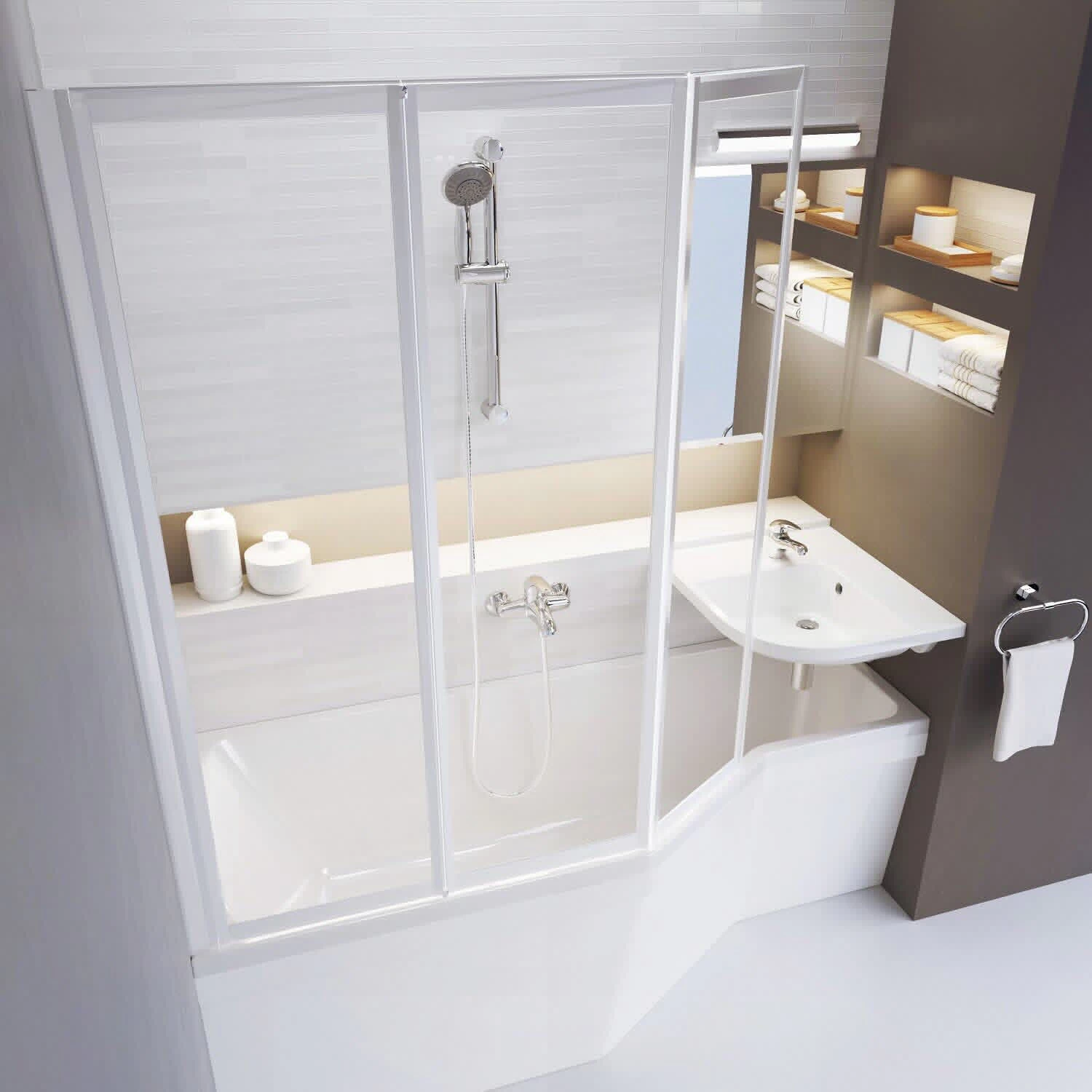 Sofern Sie die Badewanne mit einer Badewannenabtrennung VS3 versehen, wird aus der Badewanne bei Bedarf eine geräumige Duschabtrennung.