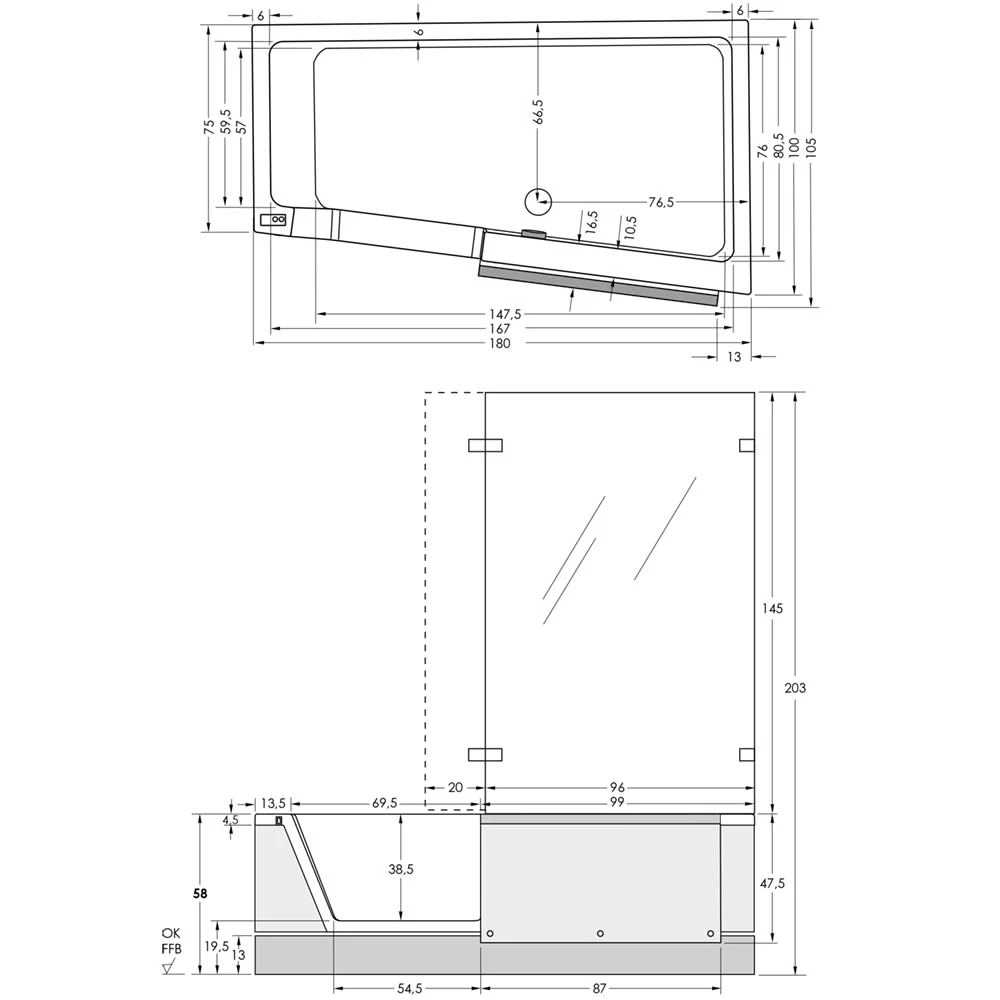 Repabad Easy-in Badewanne 180 Türe links Nischeneinbau