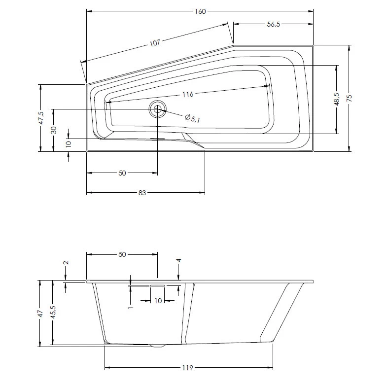 Riho Rethink Space Badewanne 160 x 75 cm (S) rechts