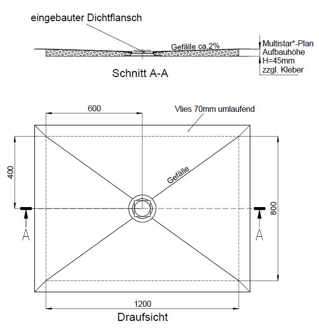 - eingedichteter Pressdichtungsflansch zur Punktentwässerung für u.g. Abläufe