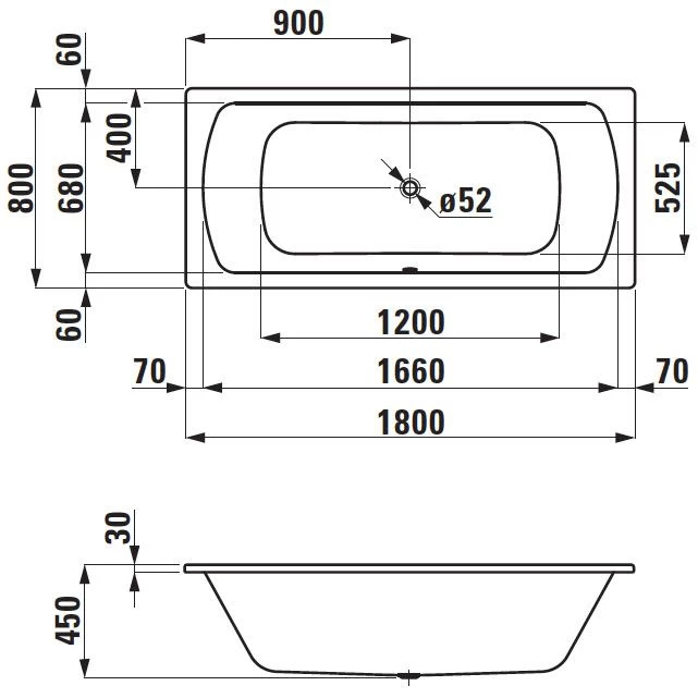 Steel Duo 180 Rechteck-Stahlbadewanne 180 x 80 cm