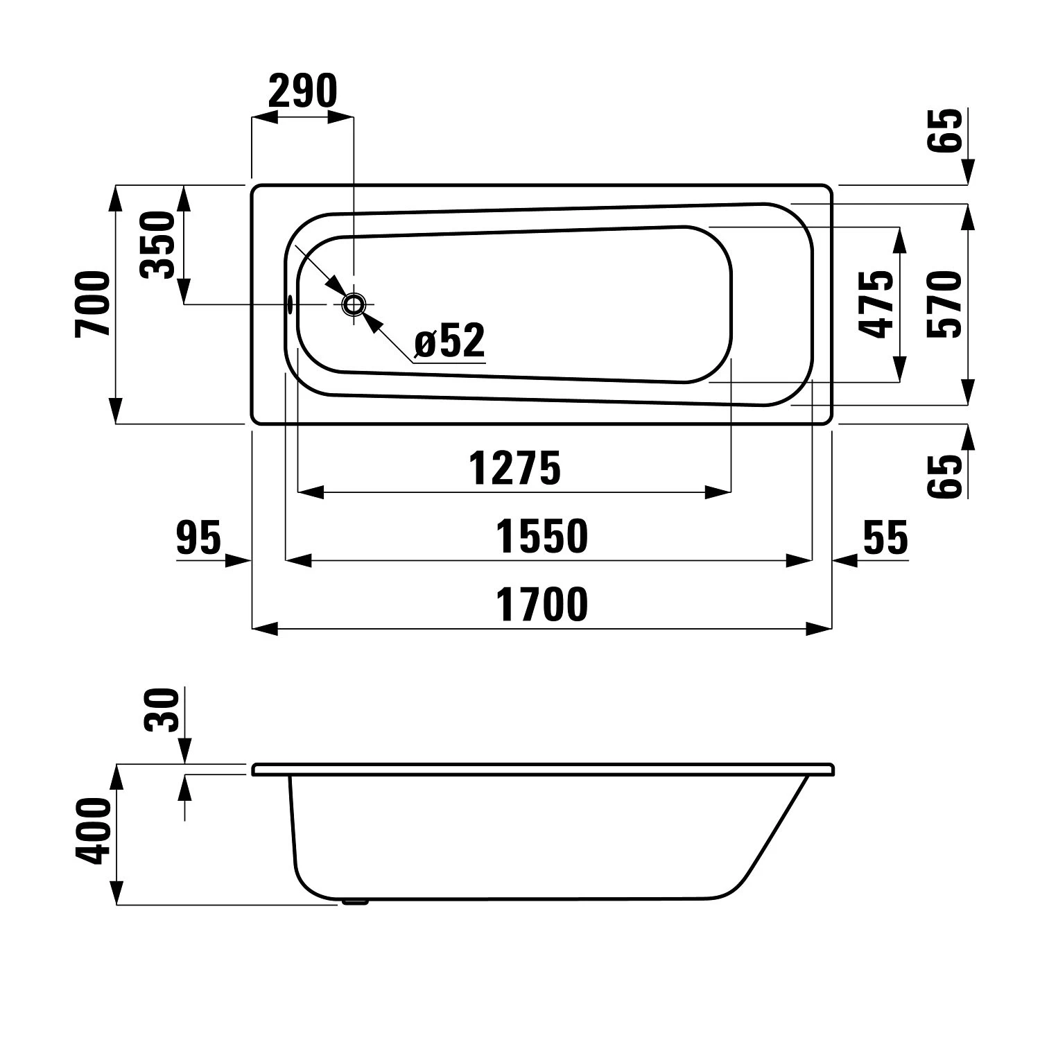 Steel Körperform-Einbaubadewanne 170 x 70 cm