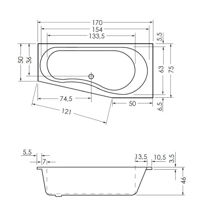 Steinkamp Life Raumsparbadewanne 170 x 75/50 cm links