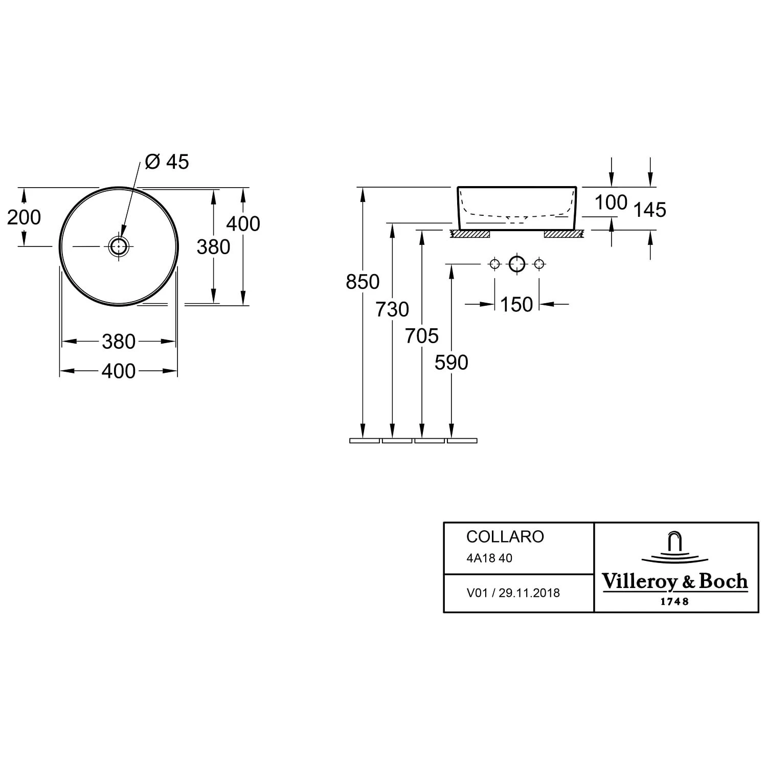 Villeroy & Boch Collaro Aufsatzwaschtisch 40 cm rund ohne Überlauf, ohne Hahnloch