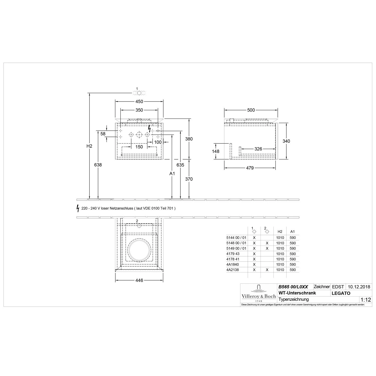 Villeroy & Boch Legato Waschtischunterschrank 45 cm mit 1 Auszug und LED-Beleuchtung