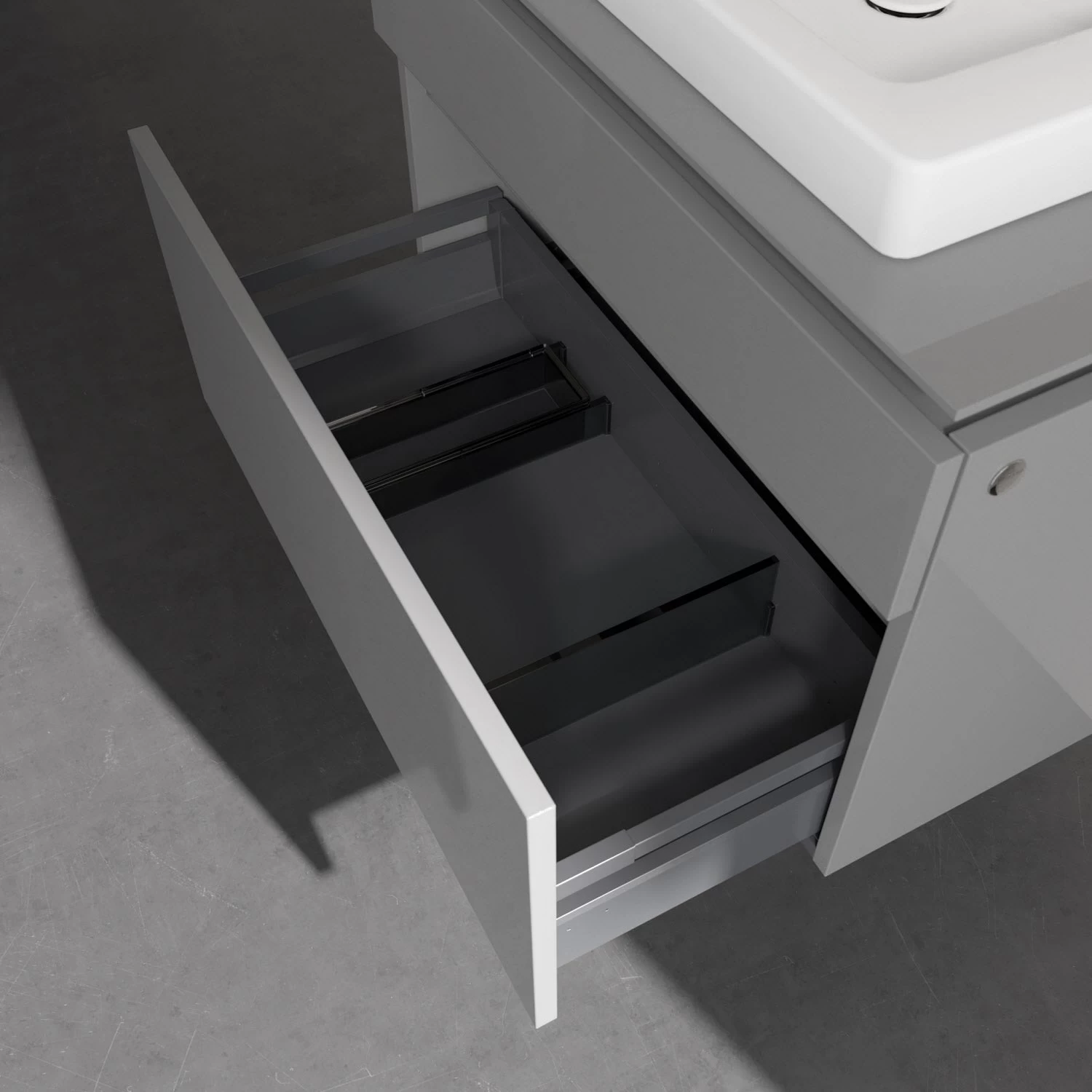 - Innenbereich der Auszüge in Anthrazit