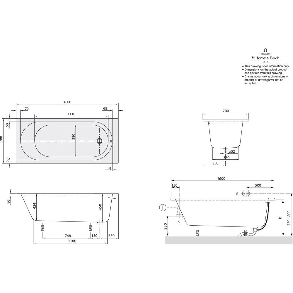 Villeroy & Boch O.novo Solo Badewanne 160 x 70 cm