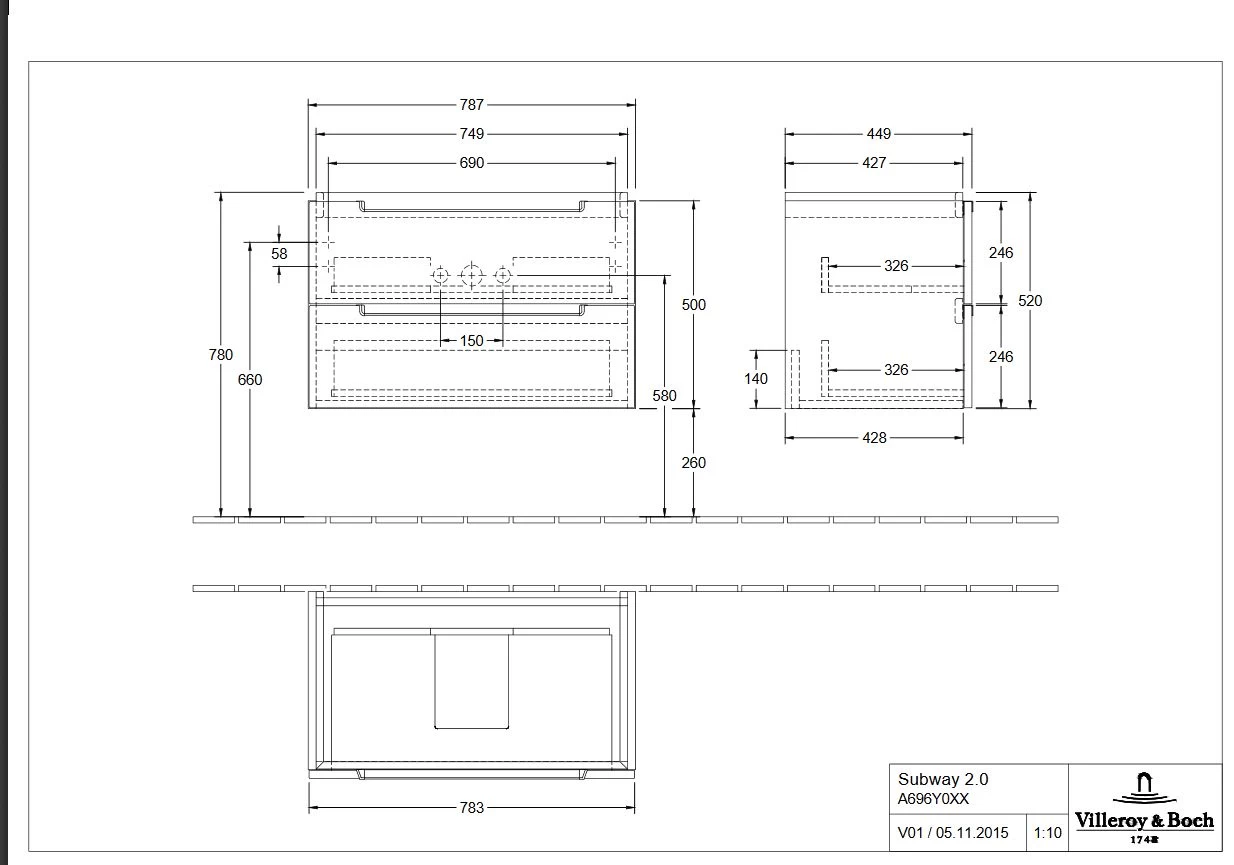 Villeroy & Boch Subway 2.0 Waschtisch-Kombination 80 cm mit 2 Auszügen und Spiegelschrank My View 14