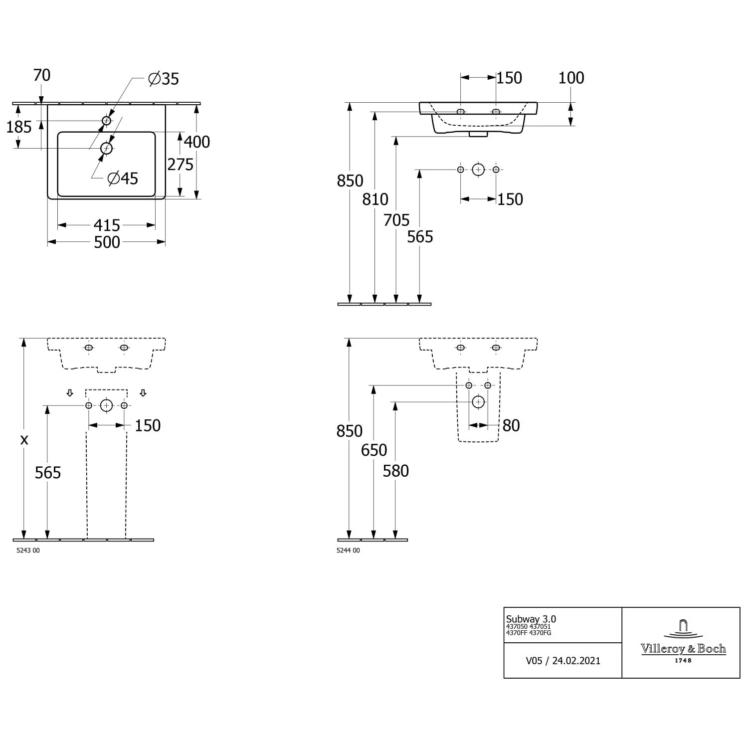 Villeroy & Boch Subway 3.0 Badmöbel-Set 50 cm, Griff volcano black, 1 Auszug