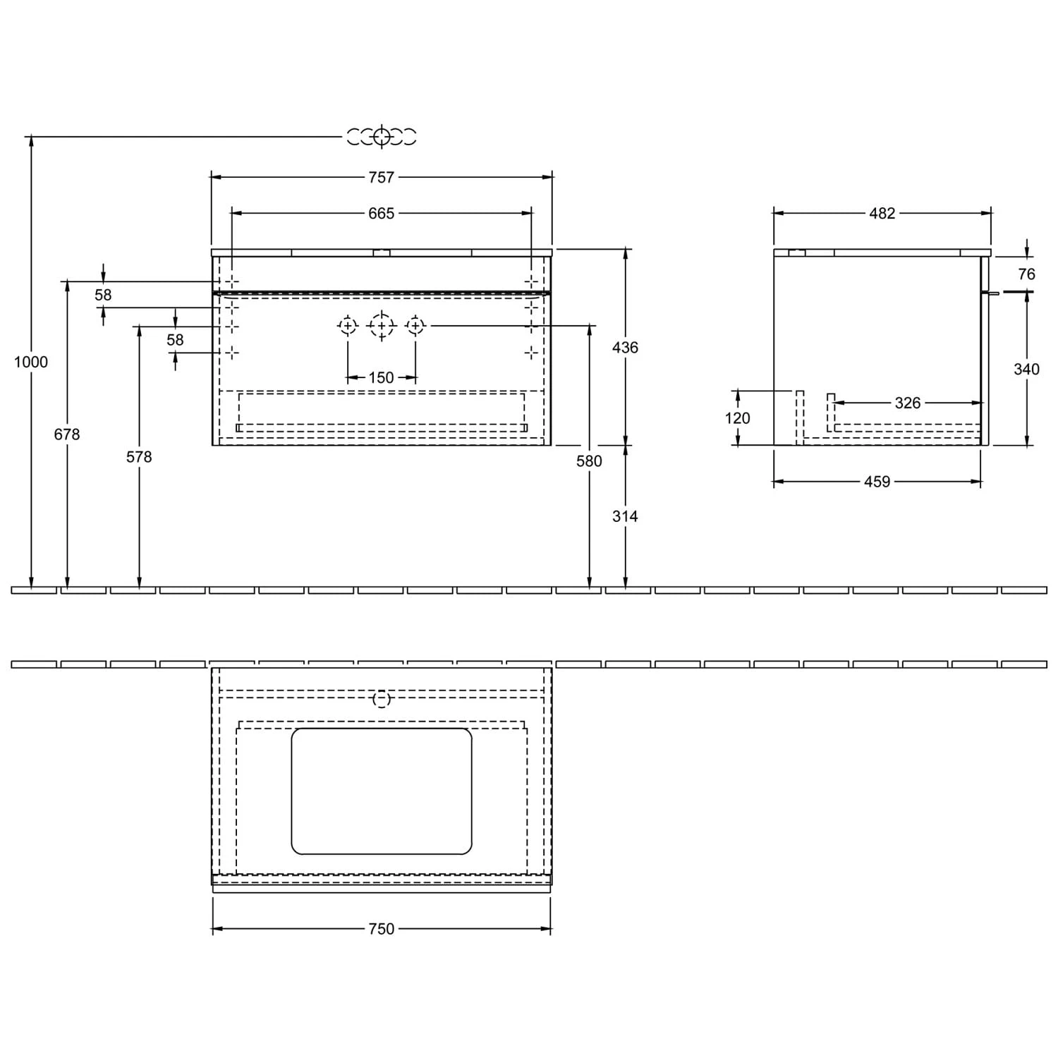 Villeroy & Boch Venticello Waschtischunterschrank 75,7 cm für Aufsatzbecken mittig