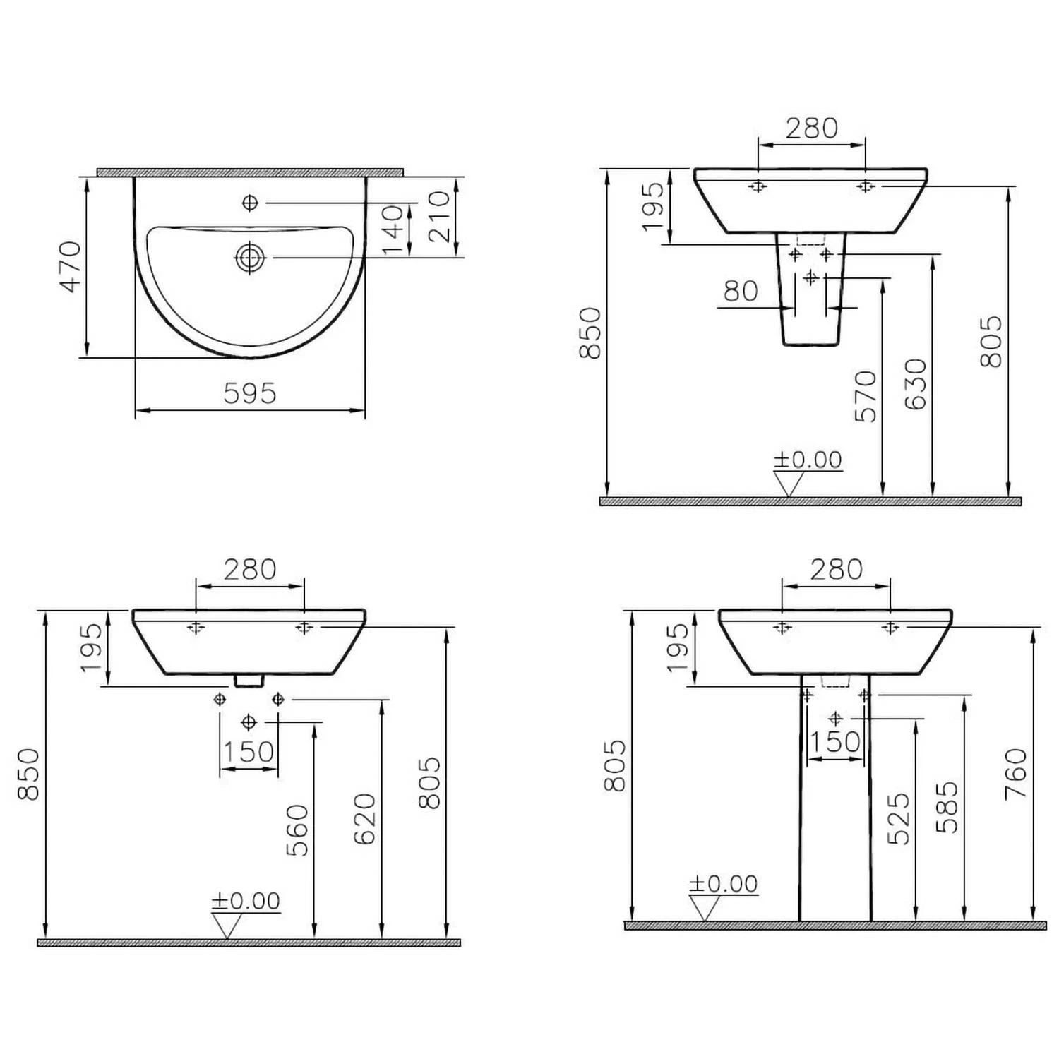 VitrA Integra Waschtisch 59,5 cm, ohne Überlaufloch, 1 Hahnloch mittig