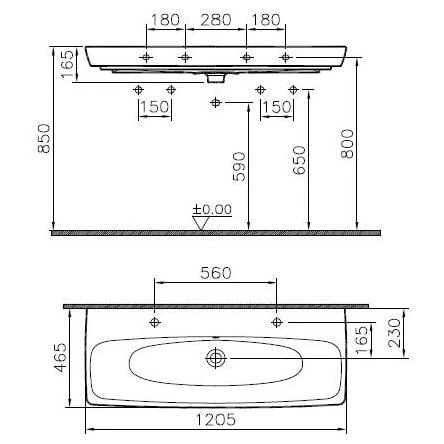 VitrA Metropole Doppelwaschtisch 120 x 46 cm ohne Überlauf